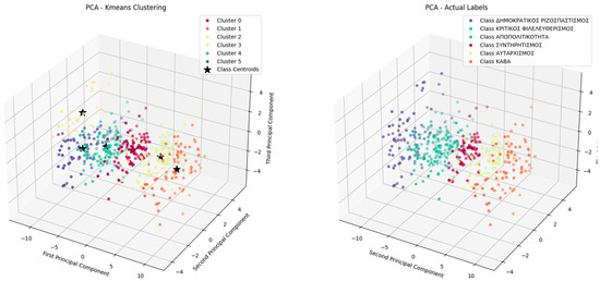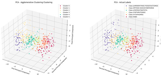 Similarly, the heatmaps provide a compact summary of frequency intensities, highlighting which responses track ideological clustering and determining the sociopolitical richness of the dataset studied. As a result, we conclude our research using PCA and clustering results (Figure 16, Figure 17, Figure 18, Figure 19 and Figure 20) to provide a quantitative dimension to these qualitative visualizations. Analytically, by reducing the high-dimensional response space to three components, PCA enables efficient comparison of variance across game users. The scatter plots and cumulative explained variance help illustrate the formation of clear user clusters using both K-means and agglomerative methods. This means that these clusters may suggest distinguishable sociopolitical profiles among players, and their underlying ideological variables can be used for future and potential classification, interaction, and voting outcomes.