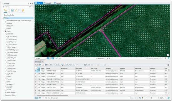 The symbology descriptor provides the agreed terms, symbols, and attributes used in all GIS layers of the service (Table 5). The first alphanumeric part of the layer name indicates the crop or crops, followed by the cultivation year (e.g., ‘R25’), whereas the second part (that after an underscore) indicates the property mapped (e.g., ‘_p’ for parcels).