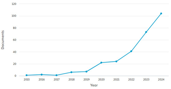 Annual evolution of publications on quantum computing and education (2015–2024). Source: authors’ own elaboration based on Scopus data.