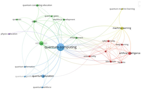 The keyword co-occurrence map presented in Figure 5 confirms this transitional character. Central clusters such as “quantum computing”, “quantum algorithms”, and “STEM education” are complemented by peripheral nodes like “teacher training”, “curriculum design”, and “coding skills”. These patterns indicate an emerging pedagogical dimension, though still marginal in comparison with technical emphases [30].