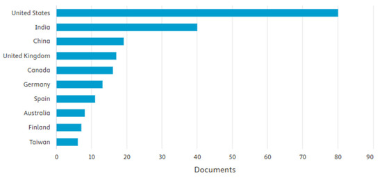 Geographical distribution of publications by country. Source: authors’ own elaboration based on institutional affiliations extracted from Scopus.