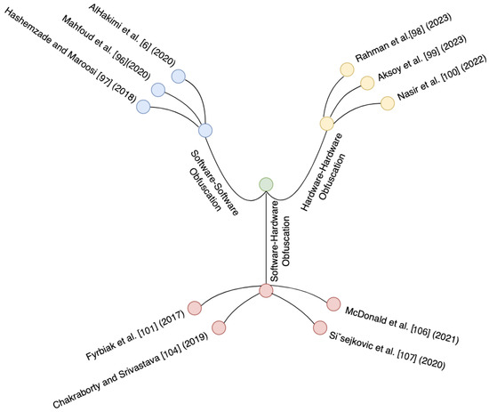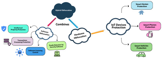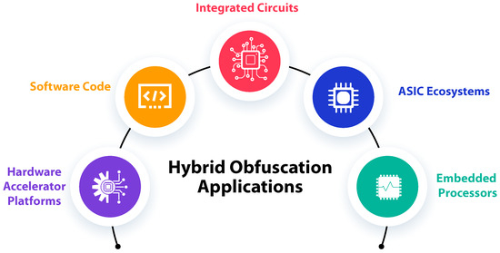 Hybrid obfuscation approaches, which integrate elements of both software and hardware obfuscation, are especially significant in protecting sophisticated and interconnected systems like smart cities and autonomous vehicles. By integrating these obfuscation approaches, modern life applications profit from improved cybersecurity measures, maintaining confidentiality, preserving crucial infrastructure, and promoting a more flexible digital ecosystem. The general applications of software, hardware, and hybrid obfuscation are explained in Figure 1.