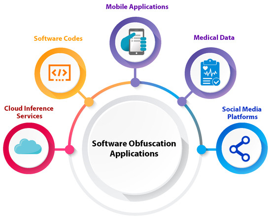 Given its protective feachers, obfuscation has gained significance across several sectors and use cases. Obfuscation approaches, involving software, hardware, or hybrid techniques, have become progressively vital in several fields of our modern life. In the domain of cybersecurity, software obfuscation has a crucial role in preserving critical data and intellectual possession. It is inclusively implemented in protecting mobile applications [10] and online platforms, prohibiting reverse engineering and prohibited access [11]. It is applied to protect the intellectual property of software companies that spread their applications; obfuscation is usually utilized to preserve sovereign algorithms and inhibit reverse engineering of the code [12].