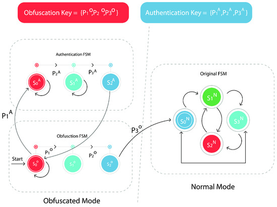- Karmakar, R.; Jana, S.S.; Chattopadhyay, S. A Cellular Automata Guided Obfuscation Strategy For Finite-State-Machine Synthesis. In Proceedings of the 2019 56th ACM/IEEE Design Automation Conference (DAC), Las Vegas, NV, USA, 2–6 June 2019. [Google Scholar]