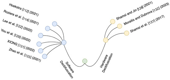 After selecting the suitable literature, we categorized the papers according to their focus area (hardware obfuscation, software obfuscation, or hybrid techniques) or whether they focused on obfuscation, detection, or deobfuscation. We then examined the methodologies and compared their effectiveness, challenges, and usability considerations reported by authors. We organized the information into tables to compare and summarize the findings in narrative form.