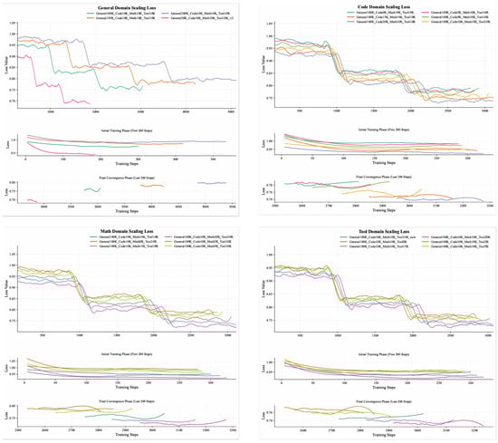 Model training loss for four domains of data scaling.