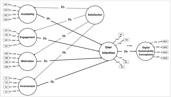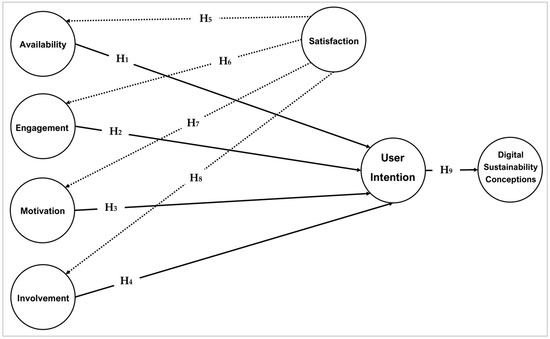 Similarly, despite the growing body of research on learners’ perceptions and willingness to integrate AI-NLP models into education [18,24,25,26,31,66], a notable gap persists in studies specifically focused on higher education organisations in Saudi Arabia, particularly those examining learners’ intentions, their perceived satisfaction with AI-NLP models, and their willingness to engage with such technologies within the evolving framework of digital sustainability. Within this context, the current study examines learners’ PDS, offering valuable insights into how UI can be translated into systematic support for the responsible and sustainable integration of educational technologies. Accordingly, the study proposes the following hypothesis: