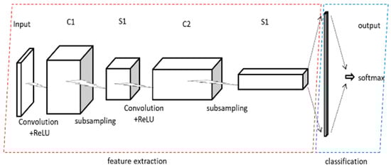 By analyzing the converted grayscale images, we can observe that images converted from the same type of traffic exhibit consistent textures, while images converted from different types of traffic show significant differences. This provides a visual basis for further classification using 2D-CNN. The general structure of 2D-CNN is shown in Figure 6.