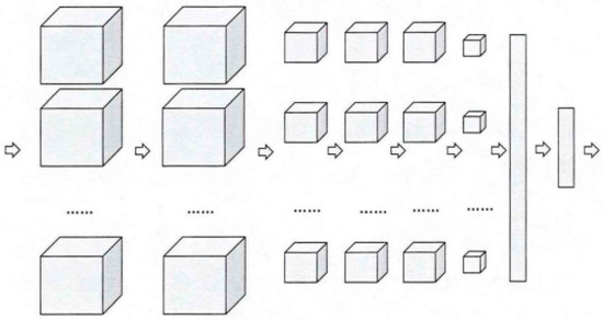 The 3D-CNN is mainly composed of convolutional layers, pooling layers, fully connected layers, and output layers. The scale and dimensionality of the data change progressively through each layer, as illustrated below: