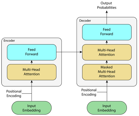 Based on the recurrent architecture, transformers are proposed in [37], where its architecture is based on attention blocks, entirely removing recurrence and convolutions from the architecture itself. This model is based on two submodules: an encoder and a decoder.
