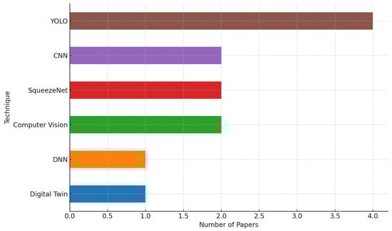 The data was then analyzed and synthesized to answer the research questions and identify patterns and trends in the literature. This synthesis supports conclusions and recommendations for future research in WEEE recycling using AI and deep learning approaches. The data extraction process was thoroughly documented, including any difficulties encountered, decisions made, and excluded data, to ensure transparency and replicability of the review. Figure 5 and Figure 6 show the focus areas of research for both WPCB recycling application point of view and techniques used for it. Table 6 shows the list of selected papers for systematic review.