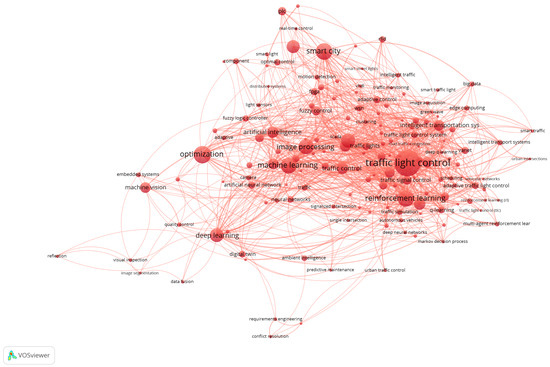 Interpretation of the 16 thematic clusters returned by VOSviewer was difficult, due to the simultaneous presence of synonyms, out-of-scope keywords, and too-generic keywords. Let us look, for instance, at Cluster 1 (Figure 4 and Table 8). The following remarks can be made: Cluster 1 is composed of 160 heterogeneous keywords. Examining Table 8, it emerges that Cluster 1 is largely focused on traffic control and traffic light control. This is testified by the following elements: