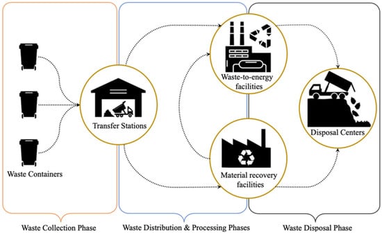 Waste Disposal Systems (WDSs) are now an essential component of managing contemporary cities and regions. Therefore, they play a significant role in achieving sustainability and ecosystem security in urban settings [1,2]. These frameworks involve the manner through which waste generated from dwelling units, industries, and other substances is collected, treated, recycled, or disposed of. Naturally, the increase in the population and the rate of urbanization means that the size of the generated waste only increases, therefore making the crucial WDS management an ever more global concern [3]. Waste management entails elaborate operational tasks such as collection routing, sorting, recycling, and preparing, which in some cases are preceded by waste-to-energy conversion or landfill disposal [4]. However, with restricted resources, changing environmental regulations, and escalating public calls for sustainability, there is a need to optimize waste disposal systems to balance cost, environmental, and social objectives.