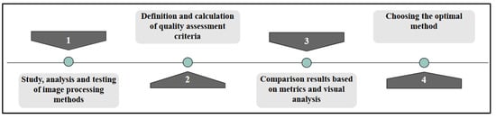 The filter preprocessing stages, which are shown in Figure 3, involved the investigation and testing of contrast enhancement (CLAHE, Equalize Hist), noise reduction (Gaussian Blur, Median Blur, Bilateral Filter, Non-Local Means Denoising), and sharpening (Unsharp Mask, Laplacian Filter, Sobel Filter) techniques. The metrics of MSE (mean square error), pSNR (peak signal-to-noise ratio), and SSIM (structural similarity) were used for performance evaluation.