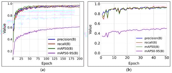 where is the predicted probability of the presence of an object within the bounding box, and is the intersection-over-union measure between the predicted and ground truth boxes. Thus, the confidence score simultaneously accounts for the probabilistic reliability of the classification and the quality of localization, serving as a comprehensive indicator of accuracy. Higher confidence values (e.g., ≥0.9) indicate strong model certainty in the correctness of the prediction, while lower values (≤0.5) may suggest unreliable or erroneous detections. During the post-processing stage, confidence scores are used to filter predictions and manage non-maximum suppression (NMS), which directly affects the model’s precision and recall [].
