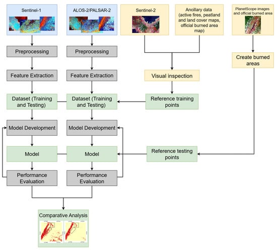 The authors sincerely thank the Japan Aerospace Exploration Agency (JAXA) for providing ALOS-2/PALSAR-2 images and the National Research and Innovation Agency of the Republic of Indonesia for supplying PlanetScope images. The authors acknowledge Indonesia’s Ministry of Forestry and the Ministry of Energy and Mineral Resources for providing Burned Area/Land Cover maps and Peatland maps, respectively.