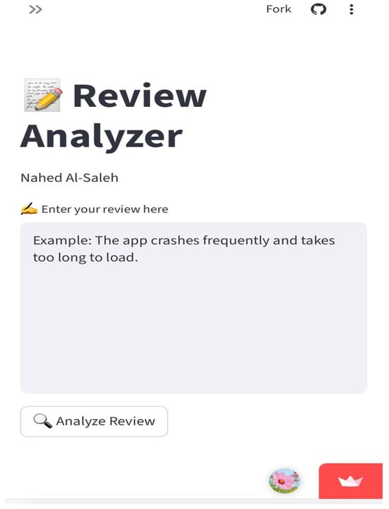 The fine-tuning process begins by installing the necessary libraries and importing dependencies required for data preprocessing, model training, and evaluation [26]. A CSV file containing negative app reviews and corresponding expert-authored recommendations is uploaded, cleaned, and formatted for training. The models are then fine-tuned using a standard supervised learning approach, with hyperparameters set to 10 training epochs, a batch size of 32, a learning rate of 1 × 10−5, and the AdamW optimizer. Each model’s native tokenizer is used to encode the data, ensuring compatibility and preserving semantic integrity. Once fine-tuned, the LLMs are employed to generate usability improvement recommendations for new, previously unseen reviews. These outputs are evaluated through a combination of automated metrics and expert human validation to assess their clarity, practicality, and relevance to the identified usability issues.