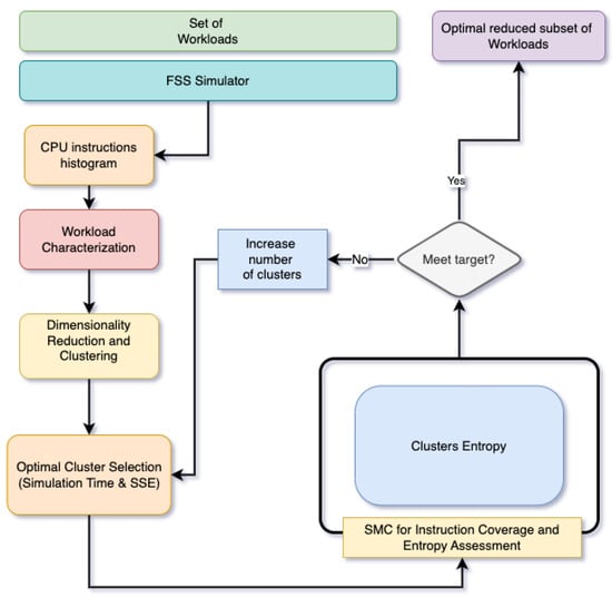 The methodology used in this work consists of the steps described in Figure 1. In the initial stage, workloads are executed on an FSS. Specifically, the experiments were conducted using the Simics FSS, which simulates an Ice Lake Server equipped with four cores and 16 GB of RAM. The workloads described in Section 4 were simulated on the FSS simulation platform to generate instruction histograms.