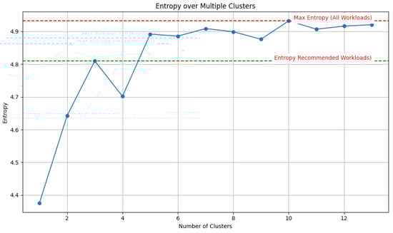 Once the optimal number of clusters is determined, Figure 4 visualizes the proposed clusters, and Table 6 presents the clustering results. This table lists the workloads analyzed in the study, showing their identification number, name, assigned cluster, and calculated instruction entropy. The classification reflects the grouping of workloads based on the similarity in their instruction profiles.