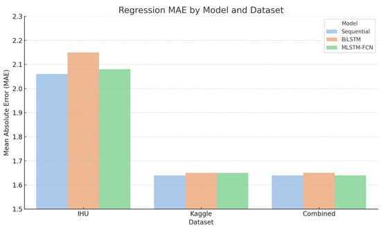 Regression performance (MAE) of the three models across datasets.