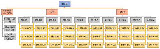 The SRSD employs a coding system that avoids excessive detail while capturing essential information about the system, including its scope, objectives, and main functions. As illustrated in Table 2, the coding system assigns a unique code to each system requirement, categorizing them into functional requirements (SFR) and non-functional requirements (SNFR).