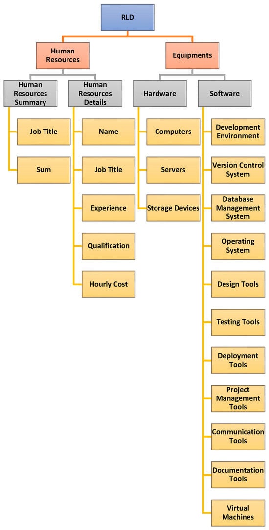 As depicted in Figure 4, the RLD comprises two primary components: human resources and equipment. The human resources section is further divided into two subsections: a summary of human resources, which outlines job titles and corresponding quantities, and detailed information on individual team members, including names, job titles, experience, qualifications, and hourly rates.