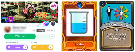Examples of three FantasyClass features. From left to right: a student’s avatar (showing their basic stats, pet, level, and skills), a collectible item, and a card. Completing a full thematic set of collectibles (in this example, laboratory equipment) results in a reward. Both collectibles and cards can be obtained at random from the virtual shop or granted as rewards for leveling up or completing tasks. Additionally, students can trade duplicate collectibles with one another through FantasyClass. The use of these screenshots has been authorized by the creator of FantasyClass.