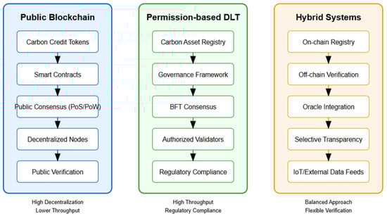 - Distributed Carbon Ledger (DCL): A hybrid system combining on-chain record-keeping with off-chain Measurement, Reporting, and Verification (MRV). DCL demonstrated superior scalability and regulatory compliance but requires greater centralization.