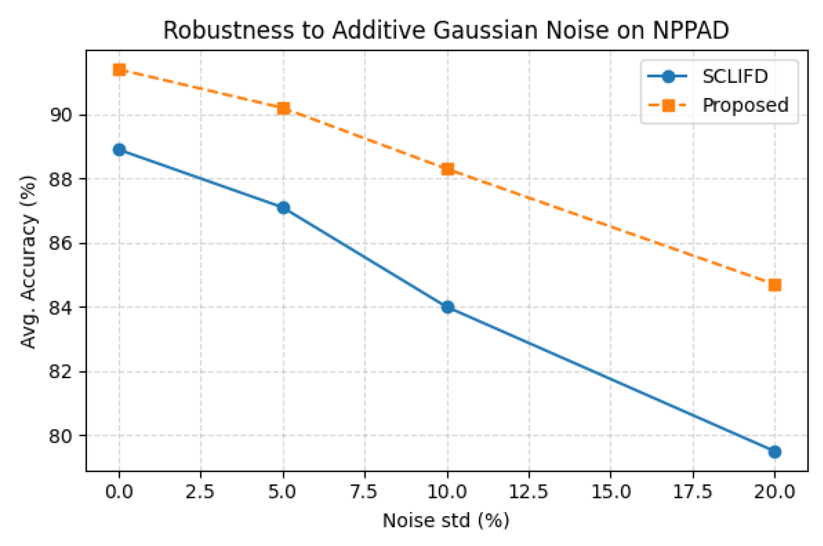 | Noise Std (%) | Method | Avg. Acc (%) | Avg. Macro-F1 (%) |