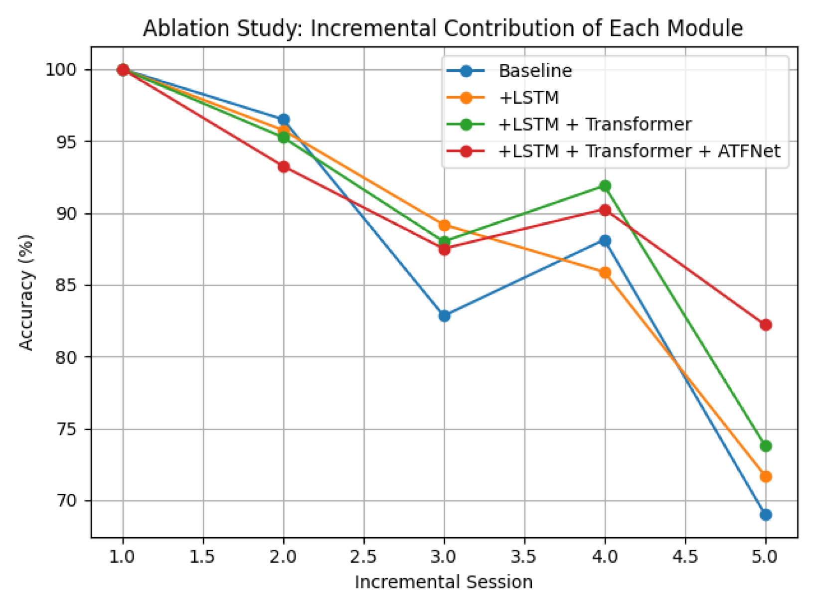 - Model level: the improved hybrid architecture contributes an additional performance gain of about +8.4%, substantially enhancing the representation capacity for complex temporal patterns.