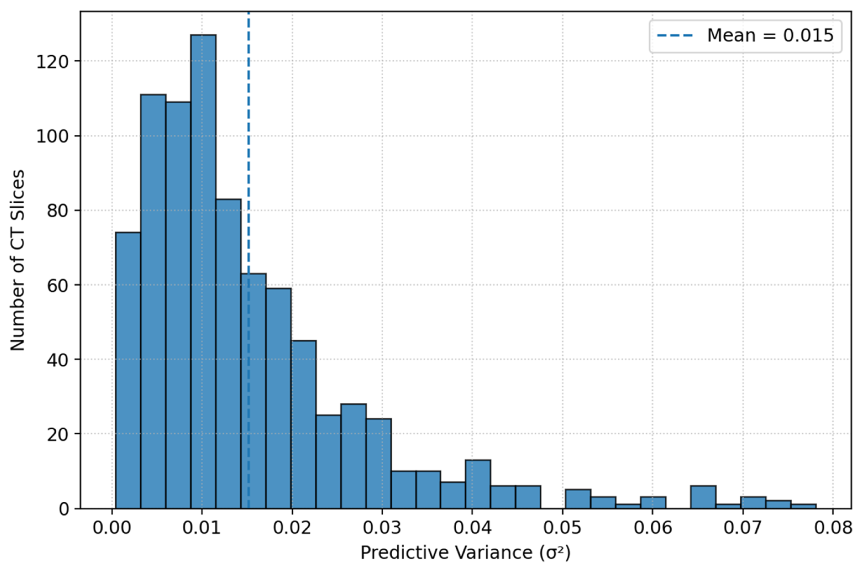 To quantify uncertainty in these calibration metrics, we computed 95% confidence intervals using nonparametric bootstrapping at the study level. For each bootstrap sample, calibration metrics were recalculated, and percentile-based confidence intervals were reported. Furthermore, we performed a selective prediction (risk–coverage) analysis to evaluate the model’s behaviour when discarding high-uncertainty cases. Predictive variance from MC Dropout was used as a rejection criterion, and we reported coverage at different variance thresholds (0.2, 0.3, 0.35, 0.4). This analysis provides insight into the trade-off between reliability and case retention, a crucial factor for clinical decision support. No additional recalibration methods, such as temperature scaling or isotonic regression, were applied. Instead, calibration was assessed on the native model outputs, allowing a fair comparison between single CNNs and the ensemble.