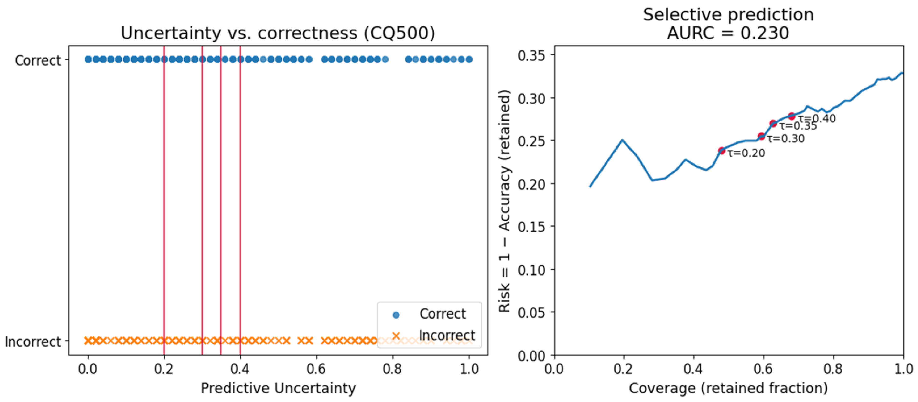 , it maintained 91% coverage while discarding highly uncertain slices, demonstrating effective uncertainty-based risk control.