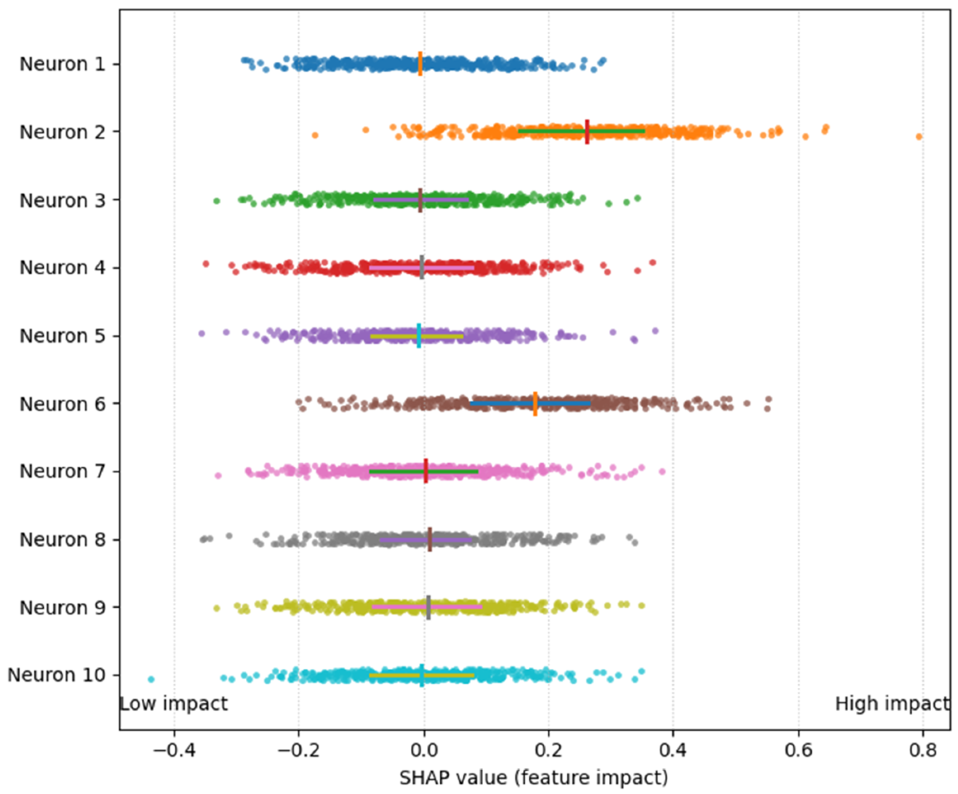 Figure 8, which presents a SHAP summary plot highlighting the five most impactful neurons.