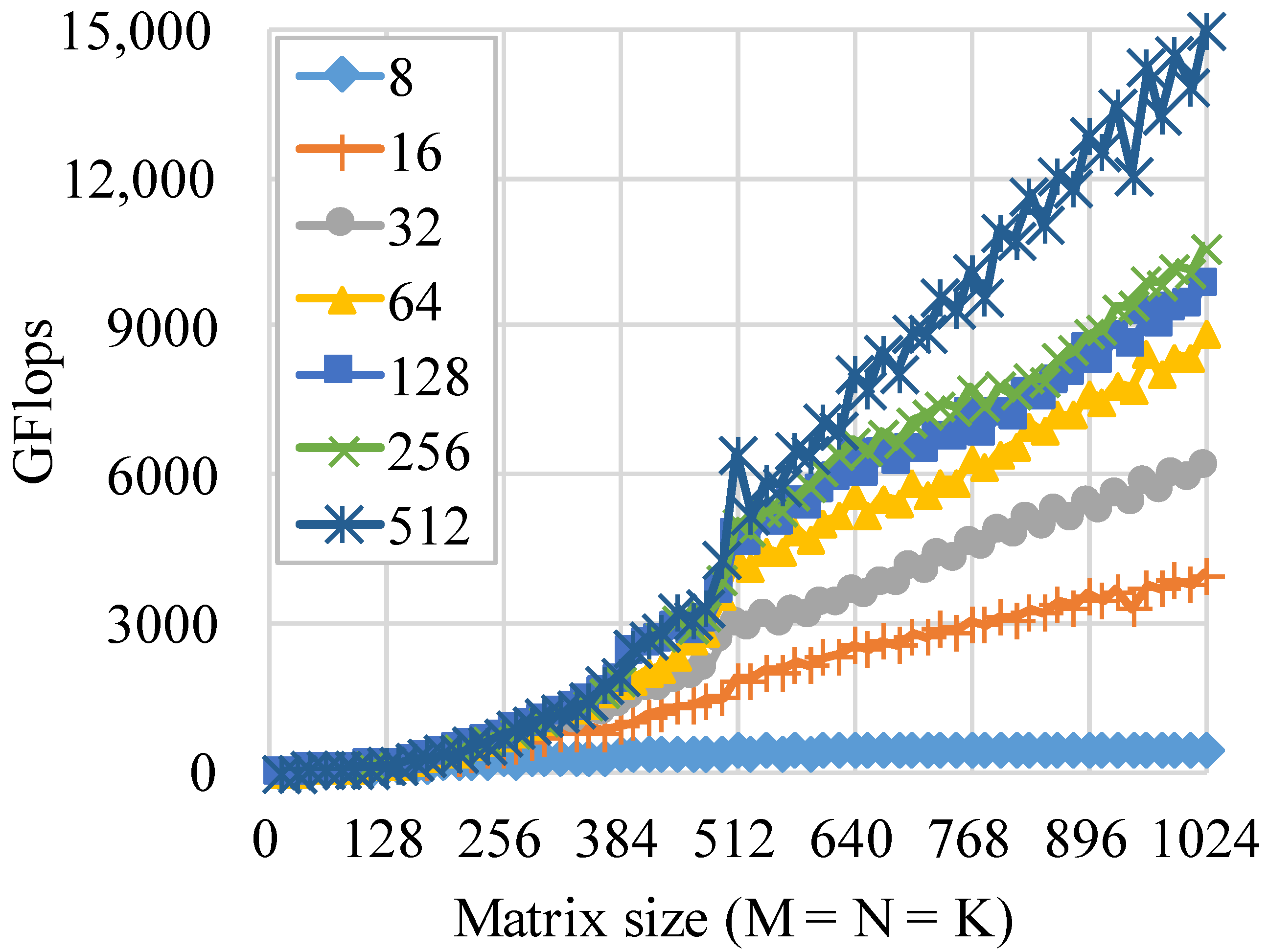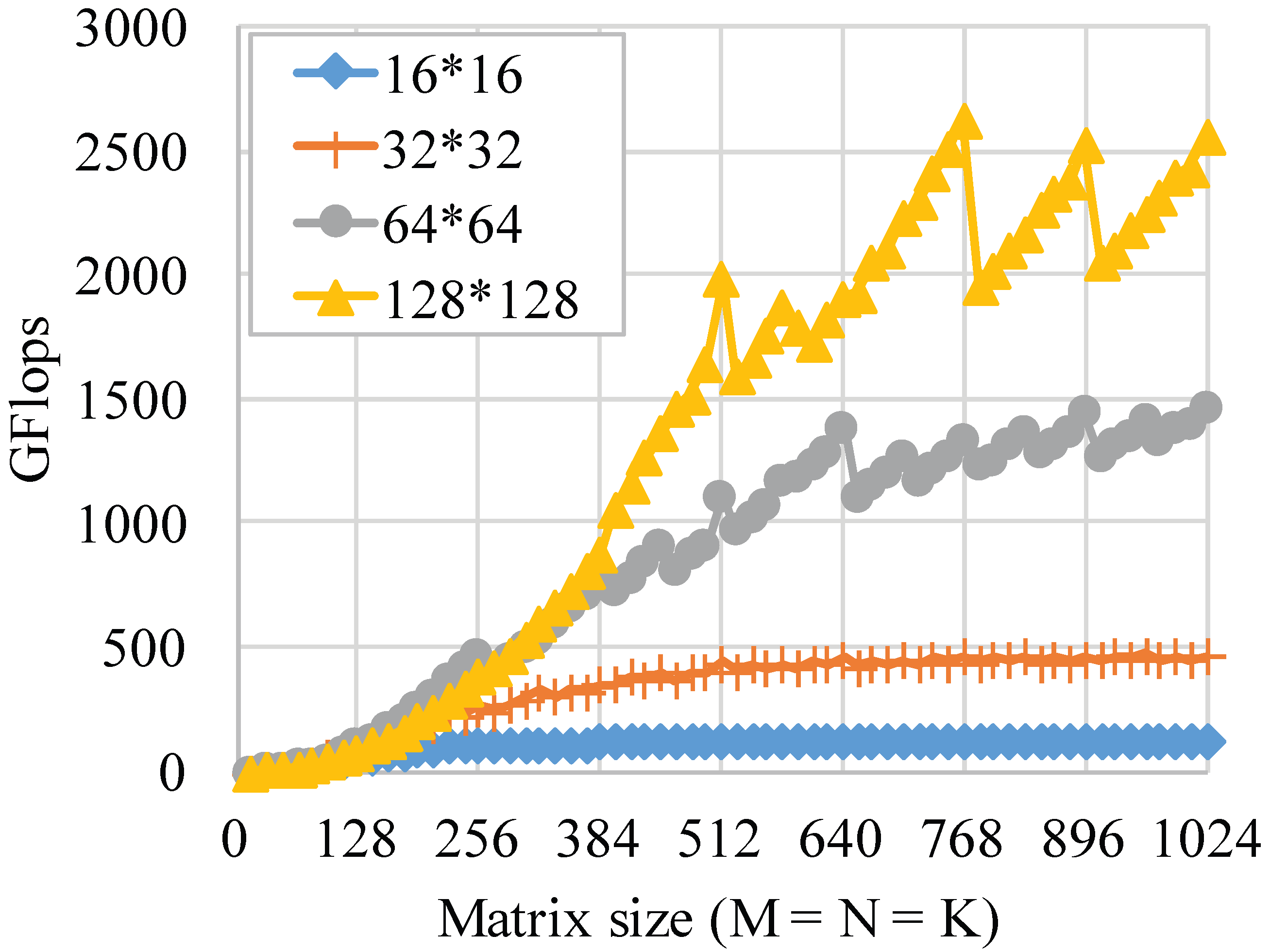 4.2.2. Effects from Tiling Sizes Along M, N, and K Directions