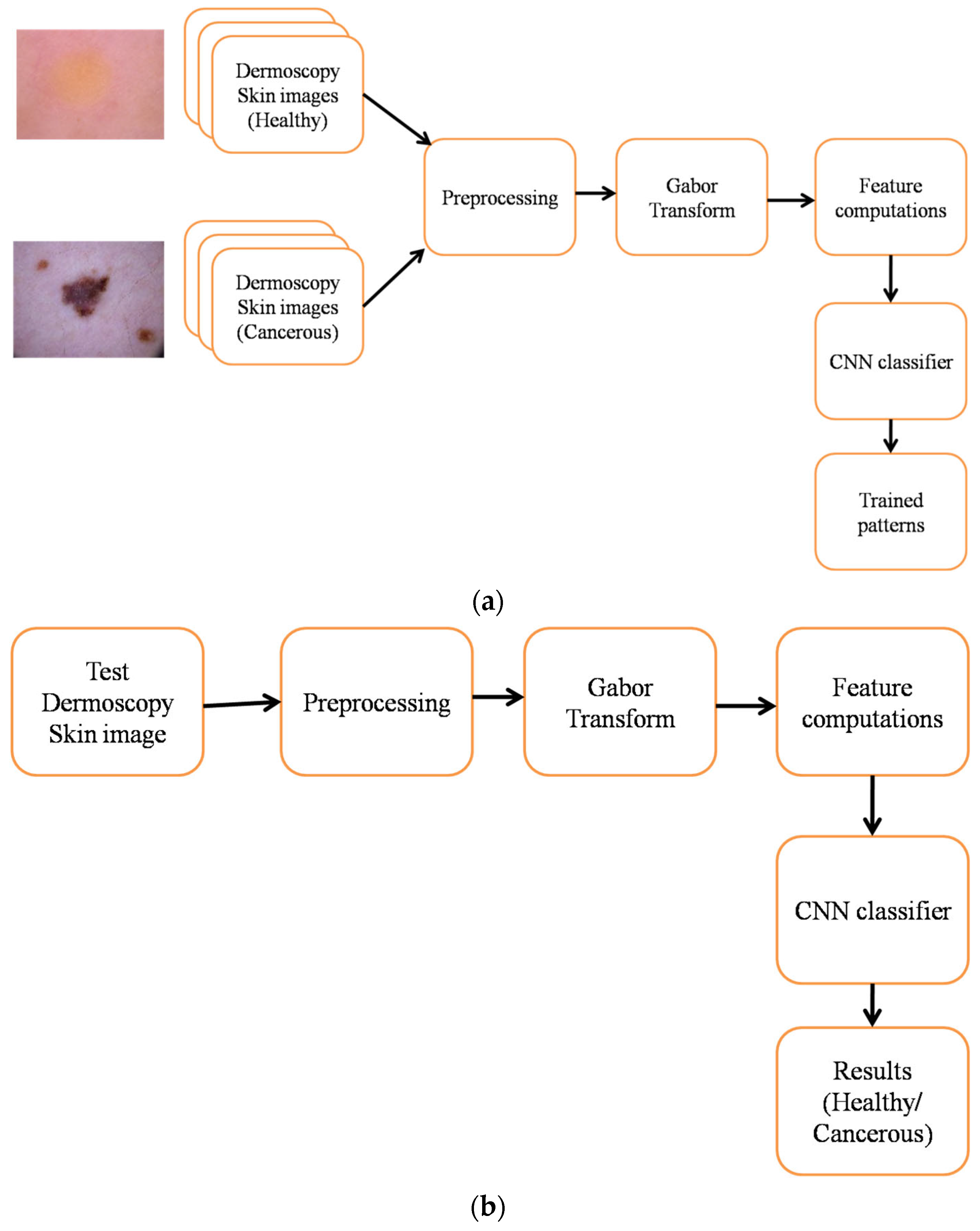 - The proposed methodology estimated extensive feature maps from spatial dermoscopy images, which were then fed into the proposed CNN to produce melanoma classification rates, whereas the conventional CNN was fed only with spatial features.