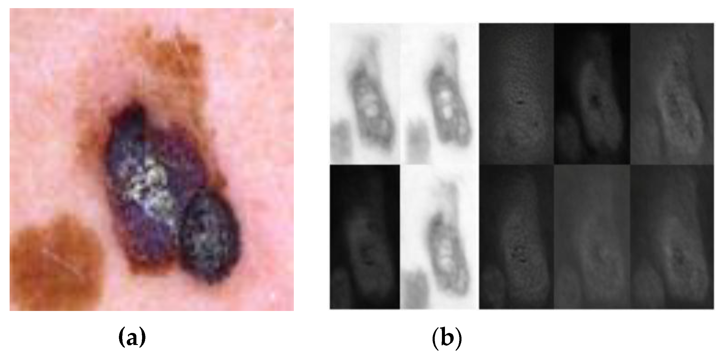 - Dildar, M.; Akram, S.; Irfan, M.; Khan, H.U.; Ramzan, M.; Mahmood, A.R.; Alsaiari, S.A.; Saeed, A.H.M.; Alraddadi, M.O.; Mahnashi, M.H. Skin Cancer Detection: A Review Using Deep Learning Techniques. Int. J. Environ. Res. Public Health 2021, 18, 5479. [Google Scholar] [CrossRef] [PubMed]