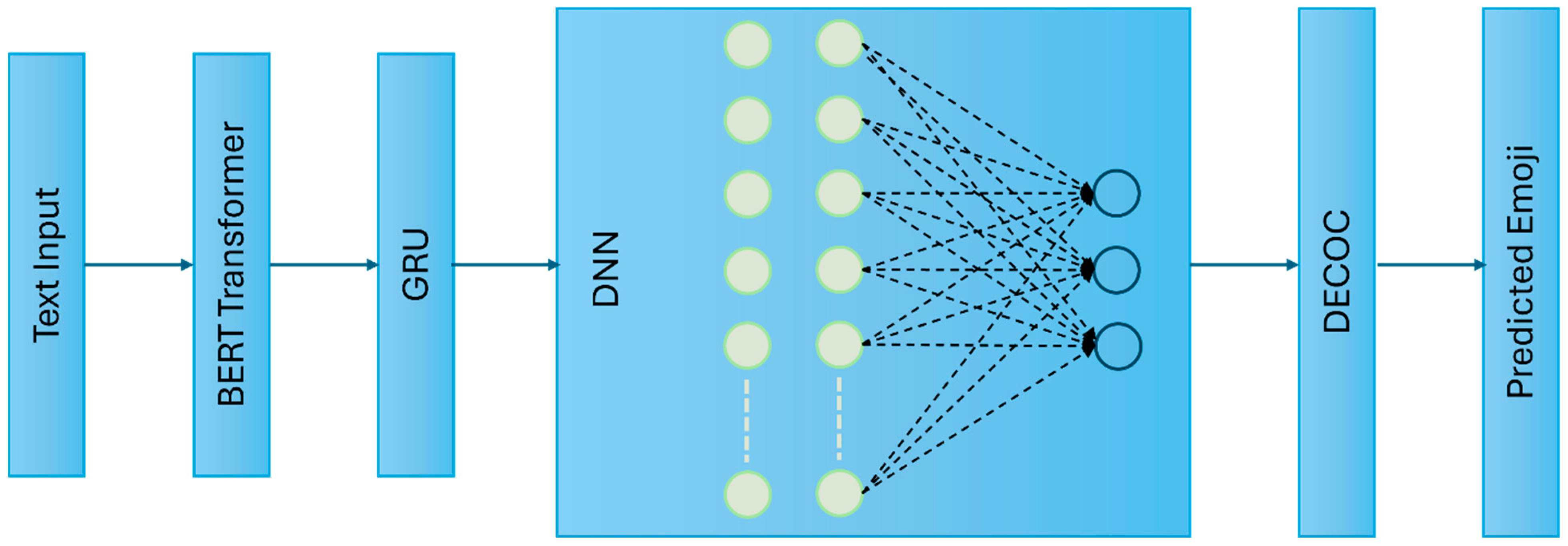 Gated Recurrent Units (GRU): Preserves sequential dependencies in text, ensuring that emoji recommendations align with natural language flow and learning context.