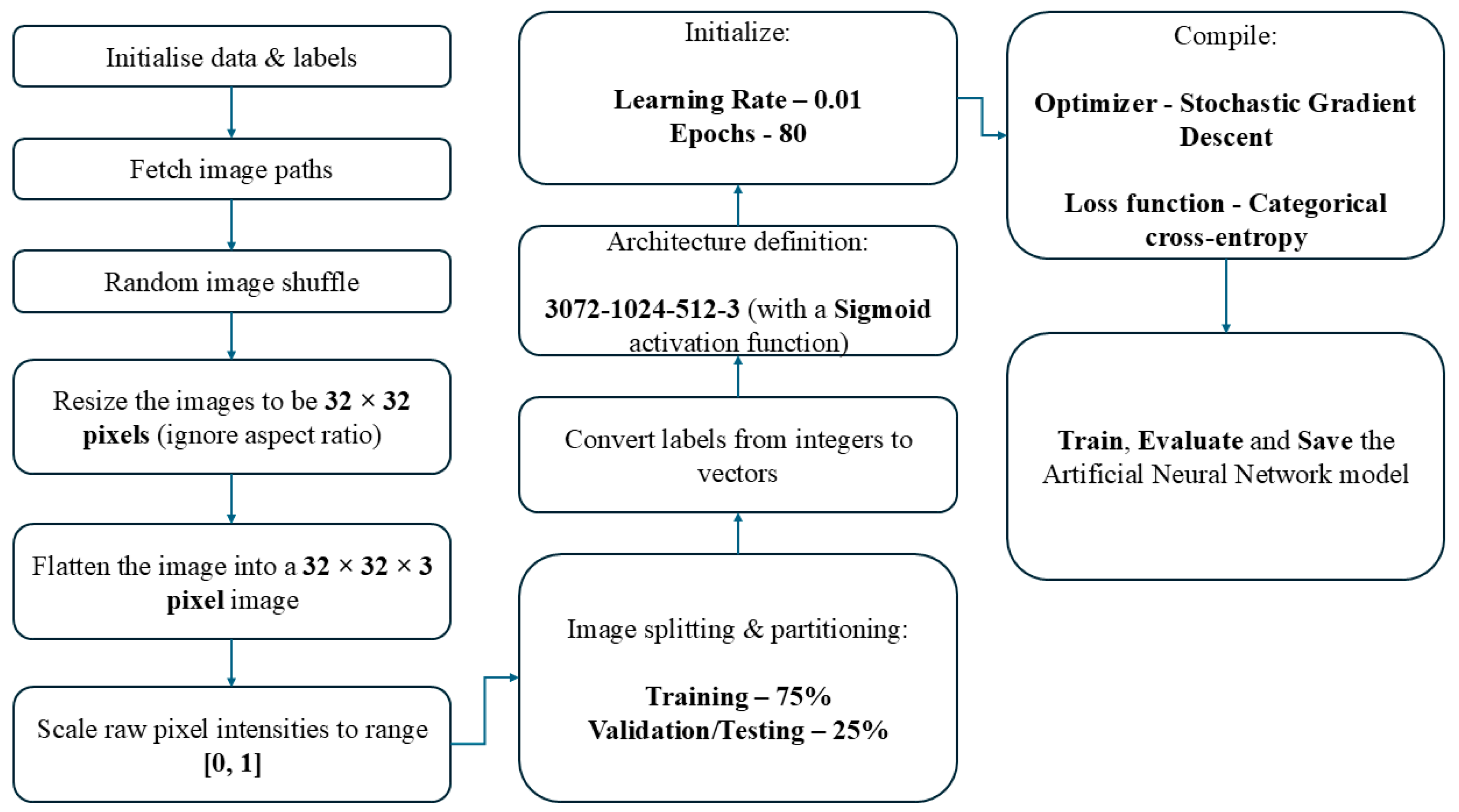 Figure 3 below presents the flow diagram of the trained ANN model.