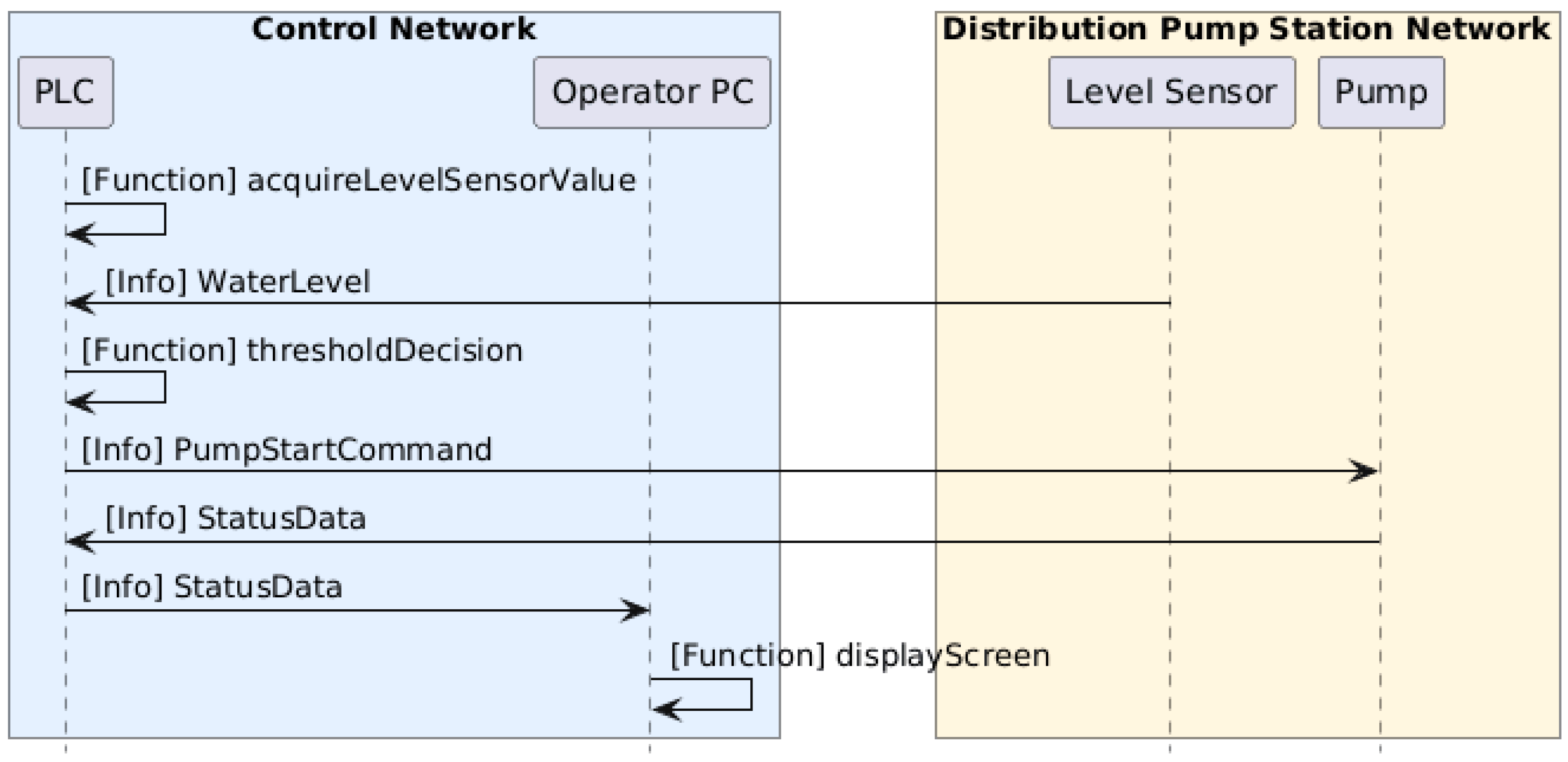 | Level Sensor | PLC | Pump | Operator PC | |