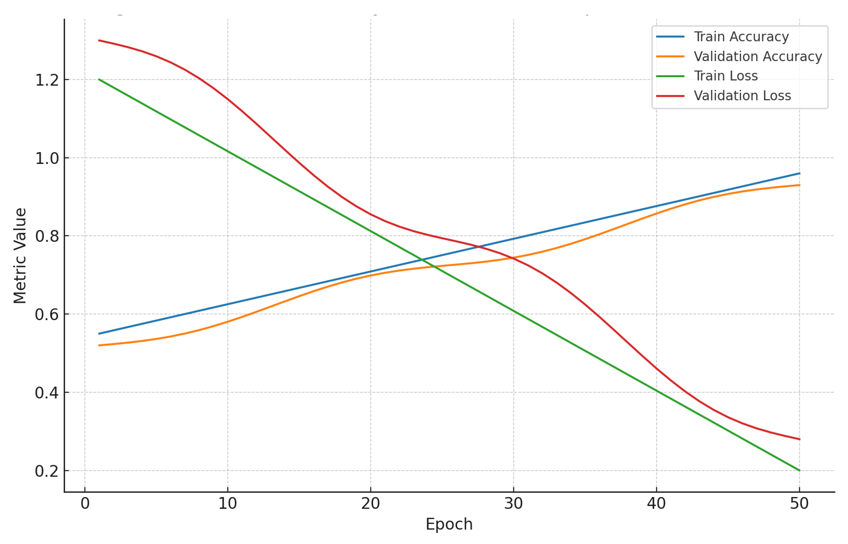 Figure 2. Training and validation accuracy and loss over 50 epochs on the CIC-MalMem-2022 dataset.
