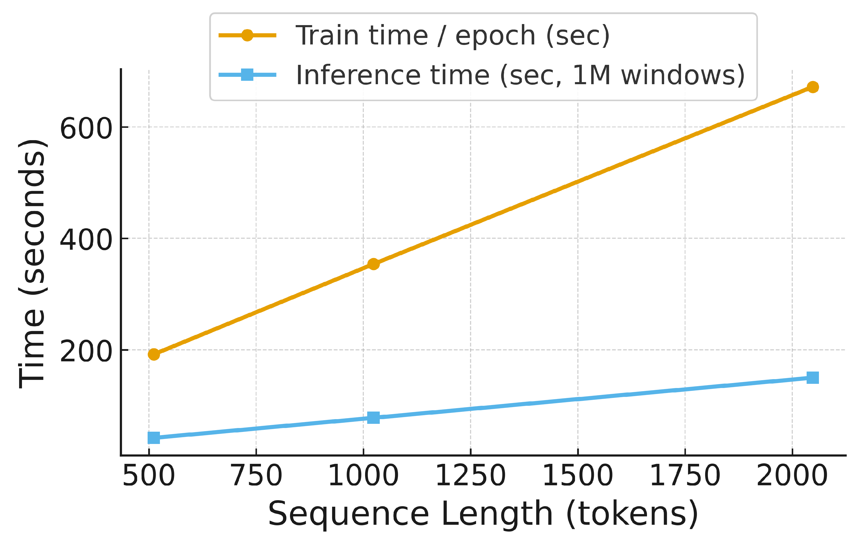 Figure 8. Runtime scaling of the transformer with respect to sequence length.