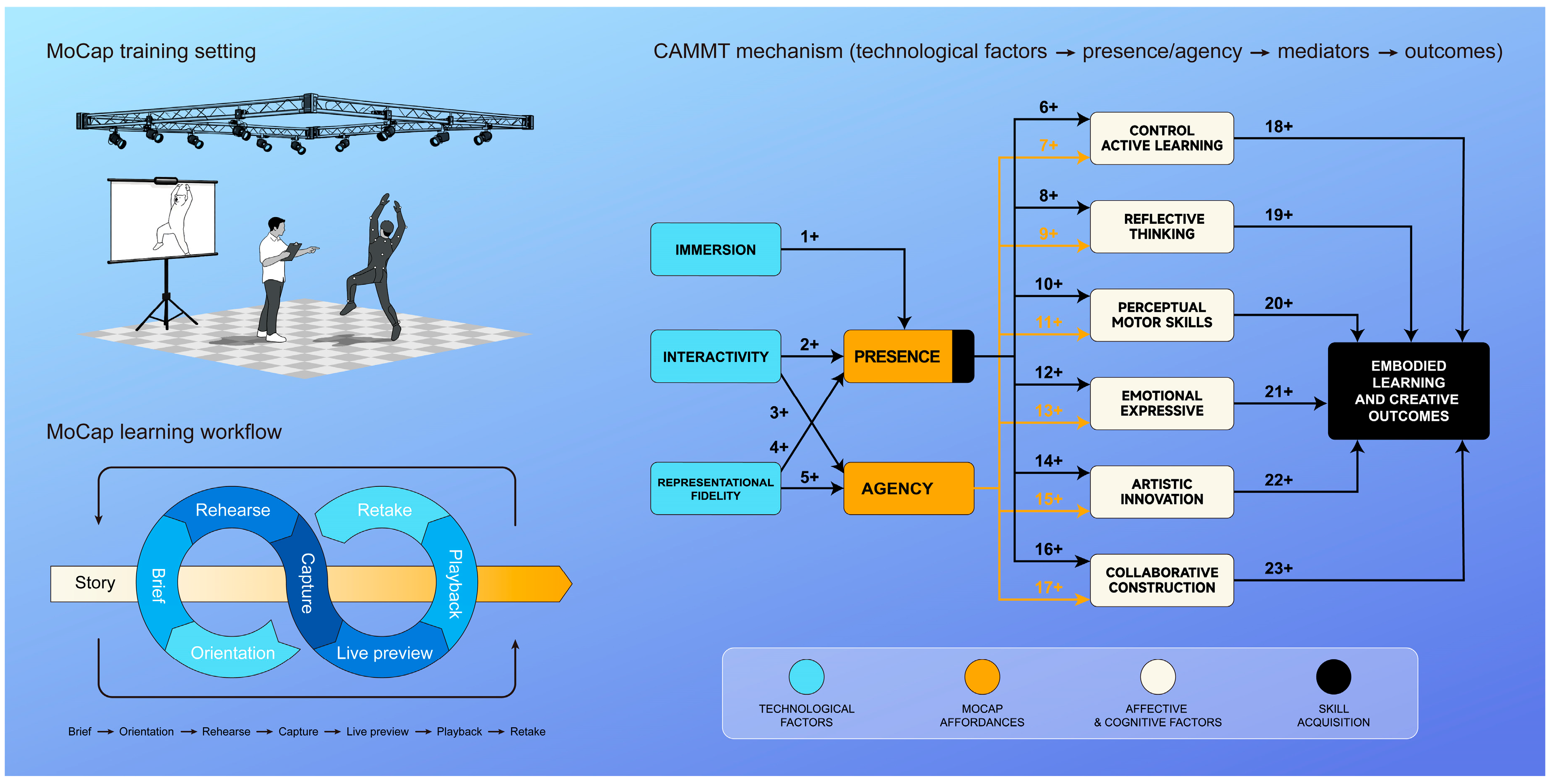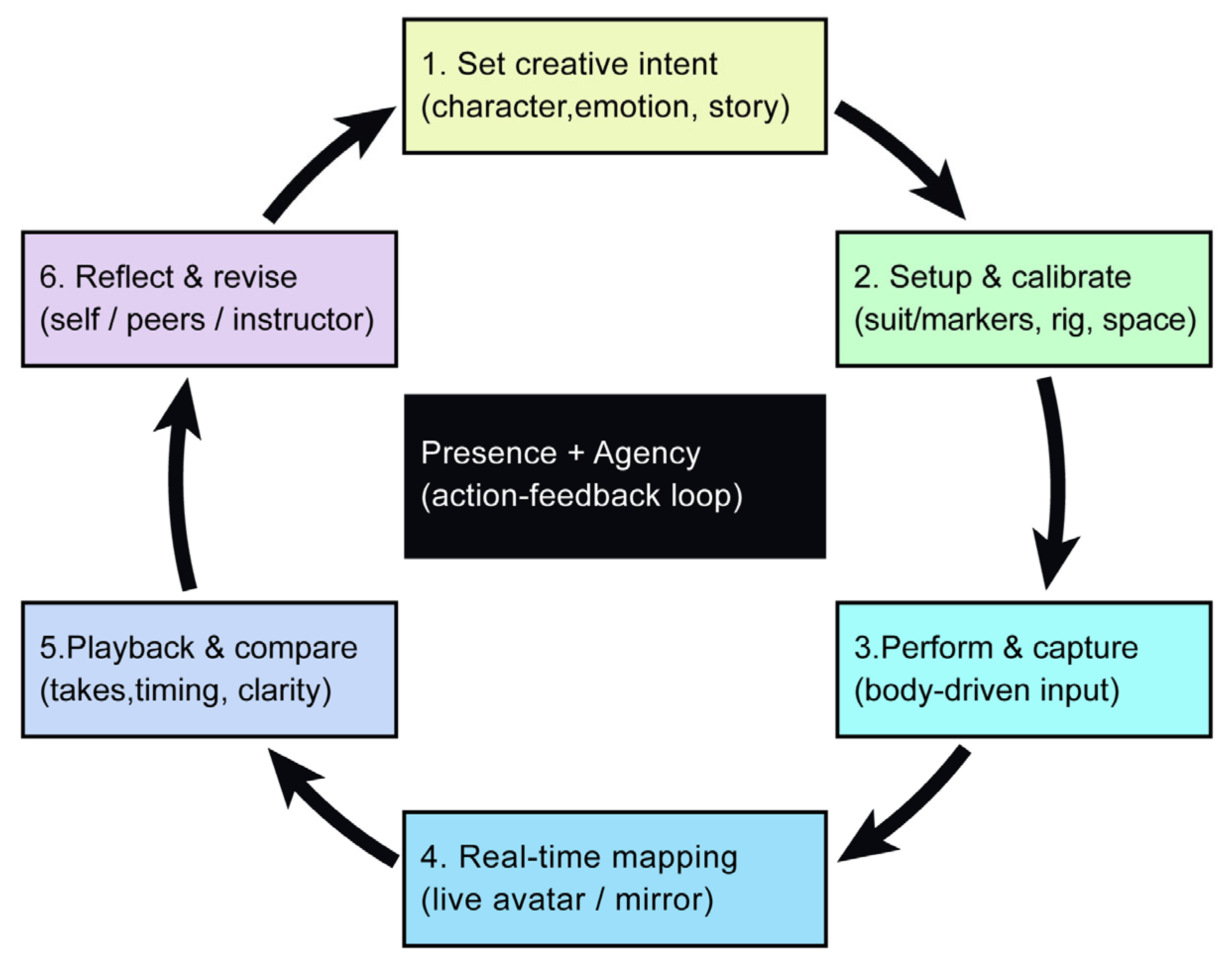| Practical implication | Guides IVR lesson design to maximize learning while managing cognitive/affective constraints. | Guides MoCap lesson design (task briefs, critique loops, iteration, collaboration roles) to cultivate expressive motion, creativity, and transfer. |