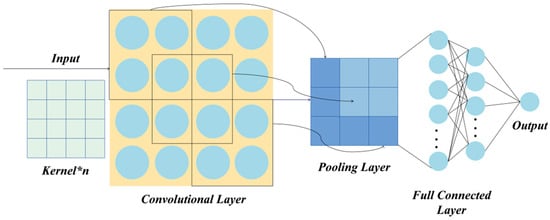 The convolutional layer extracts important features by executing convolutional operations, which involve the dot product of the convolution kernel with corresponding positions of the input matrix. Convolution kernels are initially randomly assigned matrices, and their parameters are updated via the back-propagation algorithm. Each kernel represents a distinct feature map. As the depth of the neural network increases, the features extracted by the convolutional layer gradually transition from shallow to deep. Next, all extracted data features are then transferred to the pooling layer for downsampling operations, which effectively reduces the size of the feature vectors. The fully connected layer integrates and maps these extracted data features to the labeled sample space. Different from standard neural networks, the characteristics of local connectivity, weight sharing, and spatial pooling enable the CNN to precisely capture the data features. The calculation formula of the CNN is as follows:
