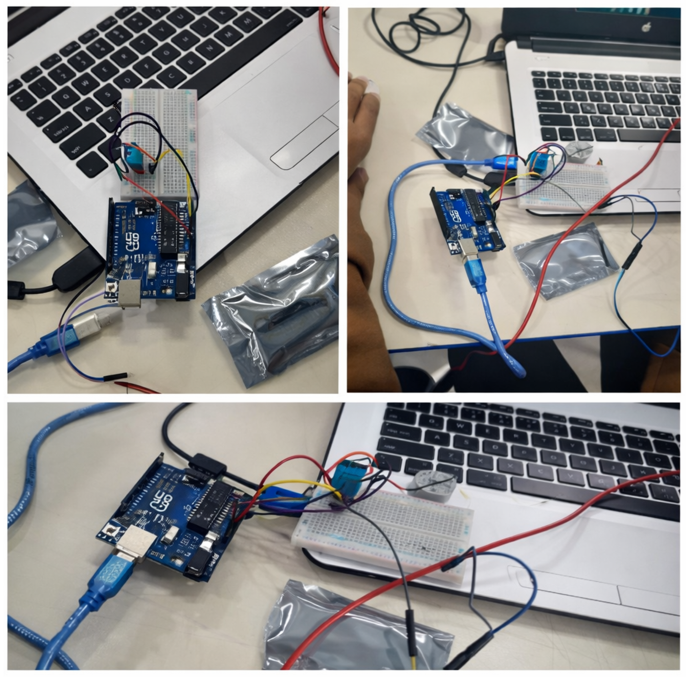 Figure 4 shows representative bench-top prototypes developed by student teams. The figure is included to illustrate typical implementations under the shared ESP32 sensing-to-cloud architecture, while allowing variation in sensors and actuation components according to each project’s agricultural or apicultural context. The figure is not intended to rank prototypes, but to document implementation diversity under a standardized kit.