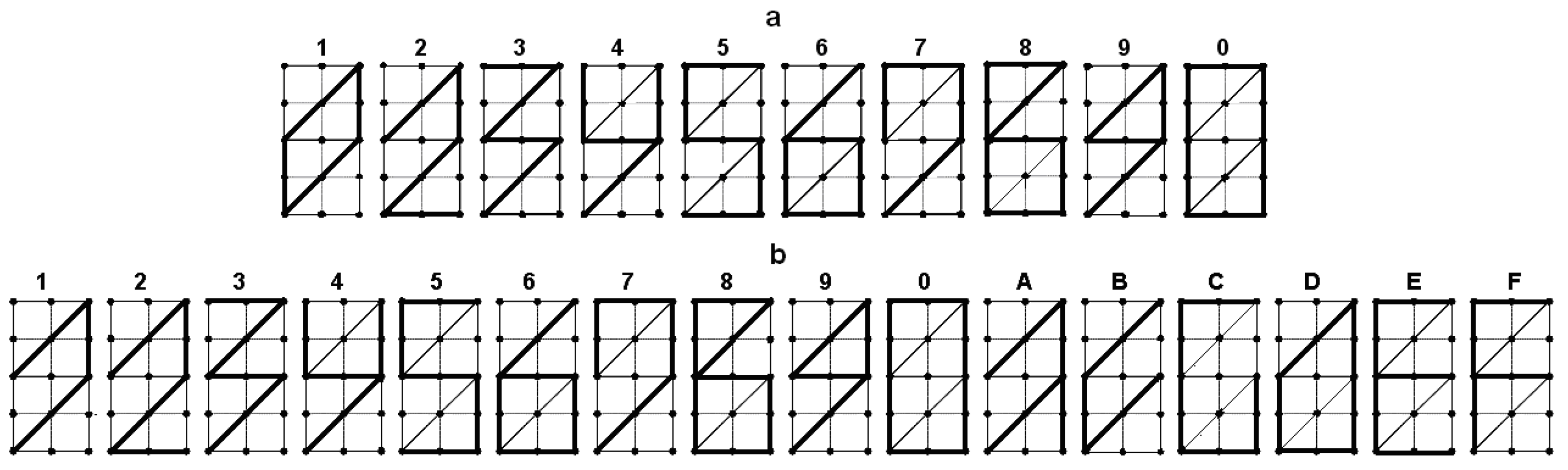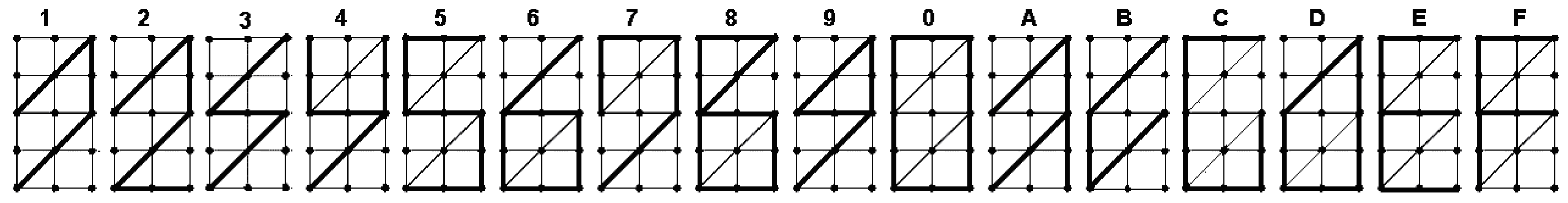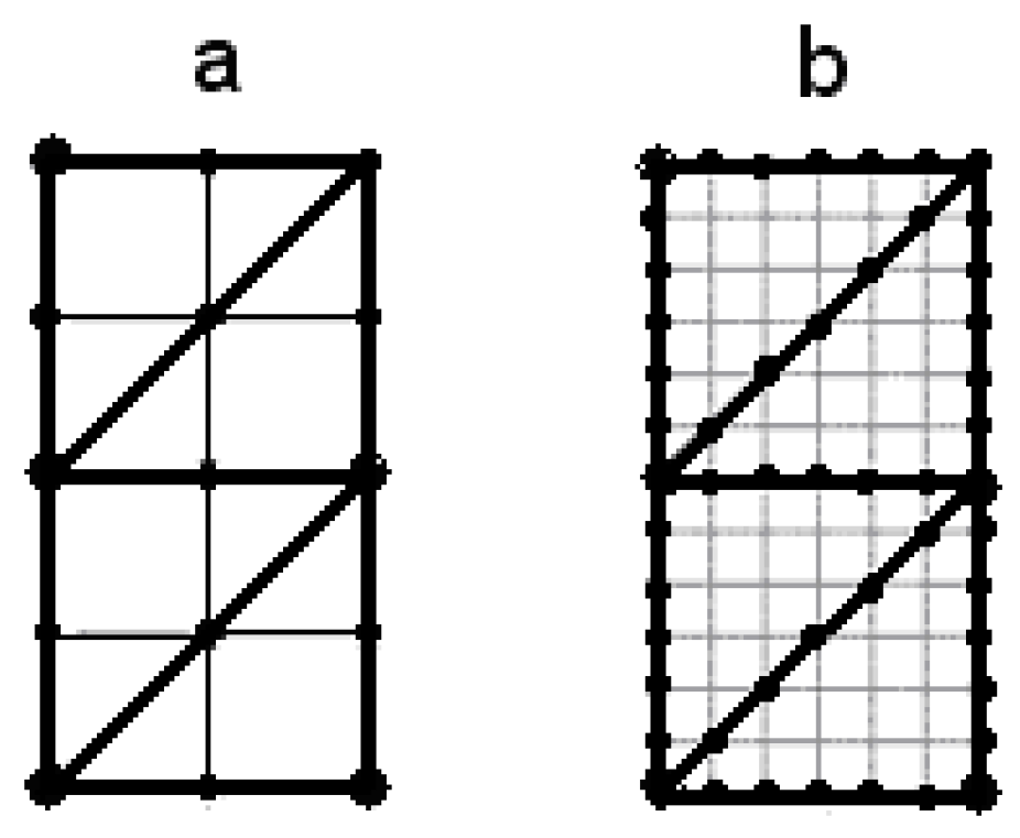 Figure 4 can provide us with valuable information regarding the heuristic rule that we seek to develop. According to the condition, the outline of the etalon points between the nodal points is composed of line segments consisting only of ones or only of zeros. The results of the first dichotomous partitions for all points of each segment, except for the nodal points, are identical. Examination of