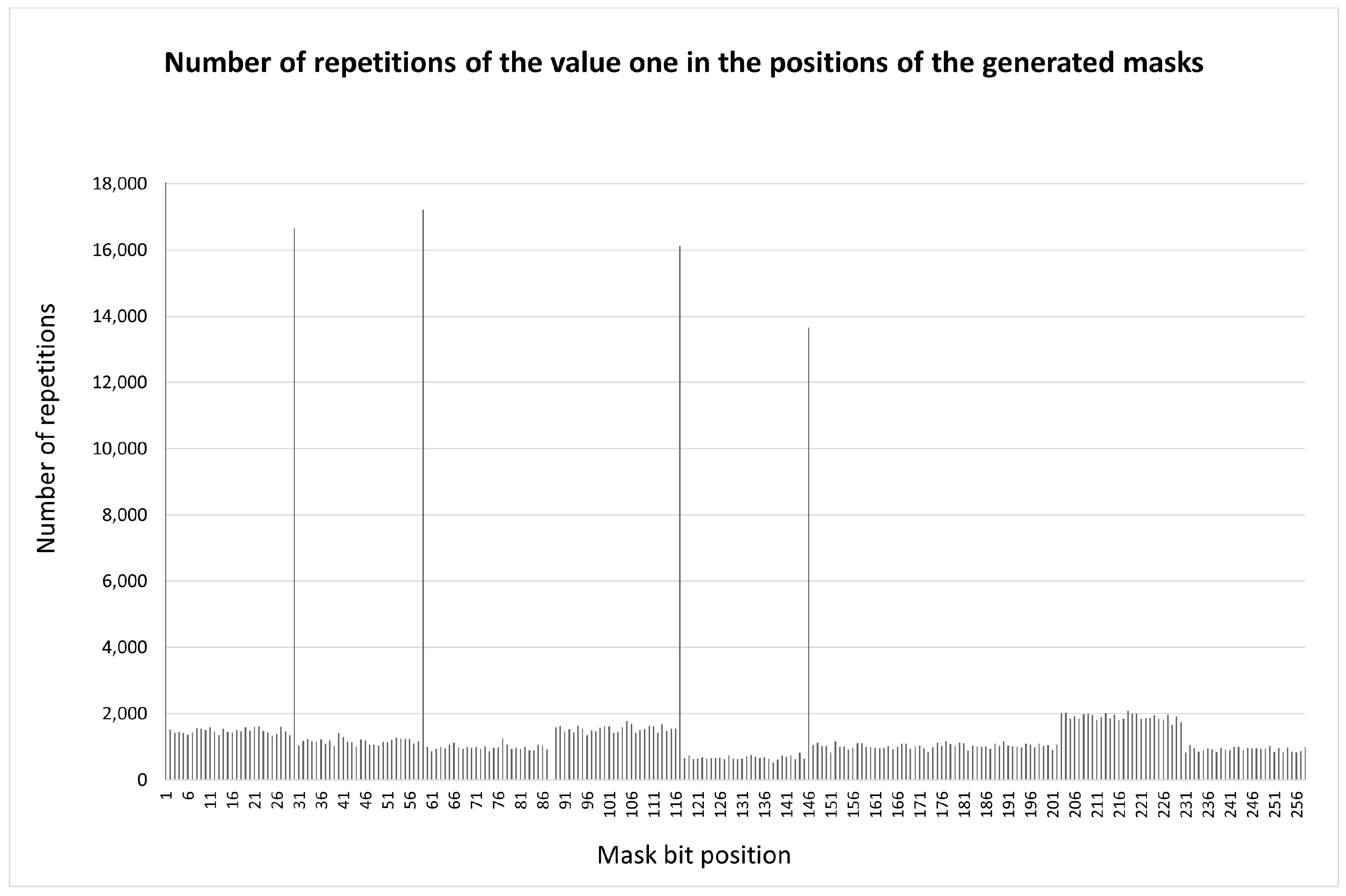 obtained keys. It was found that 73% of them contain at least one “critical” mask (on average, 8 such masks for each non-working key). In other words, only 27% of the keys can be used in practice. This could lead to a reduction in the cryptographic security strength.