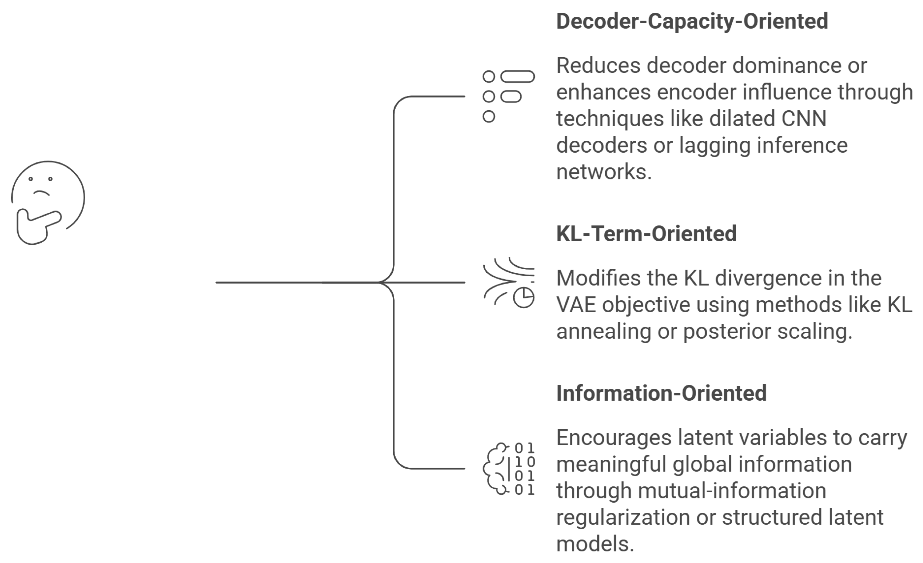 35]. Lagging inference networks and semi-amortized VAEs provide complementary optimization-based solutions by decoupling encoder and decoder learning dynamics, thereby reducing posterior collapse without modifying model architecture [