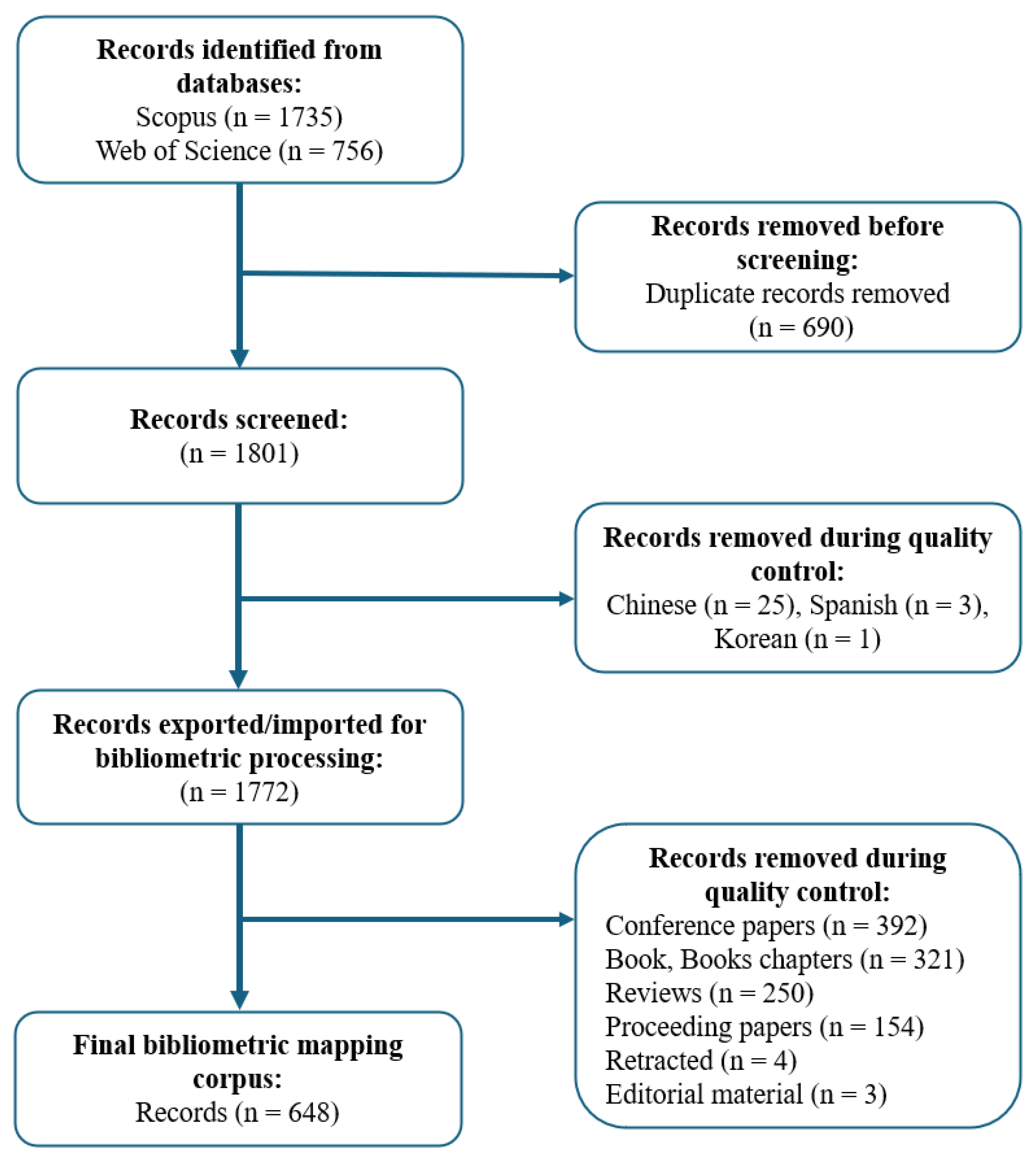 - Language: non-English publications (Chinese, Korean, and Spanish records were excluded).