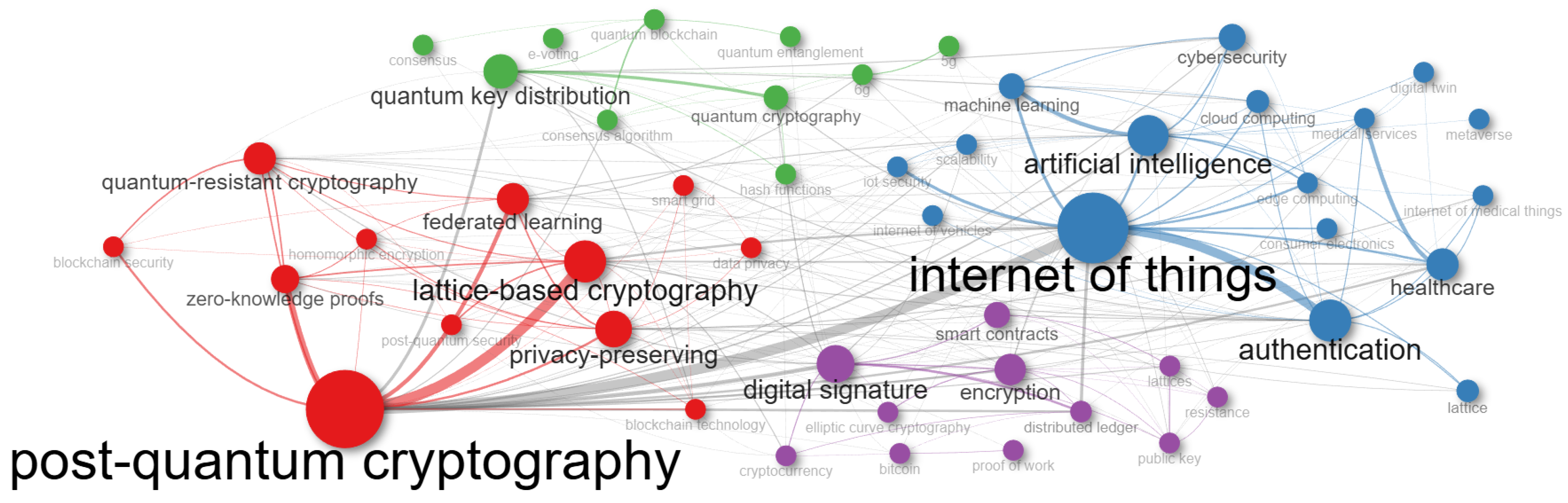 blockchain, blockchains, technology, technologies, system, systems, architecture, framework, model, models, modeling, security, cryptography, quantum, post-quantum, post quantum, quantum computing, protocol, protocols, algorithm, algorithms, scheme, schemes, approach, methods, performance, evaluation, validation, testing, implementation, design, development, management, issues, future, proposals, state, communication, computing, computation, computers, computer, networks, network, servers, devices, data, information, vectors, costs, efficient/efficiency, secure, smart, artificial, internet of, na, privacy, internet, challenges, efficient, things, 0, current, article, review, reviews, surveys, literature review, systematic, systematic review, bibliometrics, bibliometric analysis, analysis, taxonomy, research, research trends, trends, intelligence, protection, optimization, signature, signatures, functions.