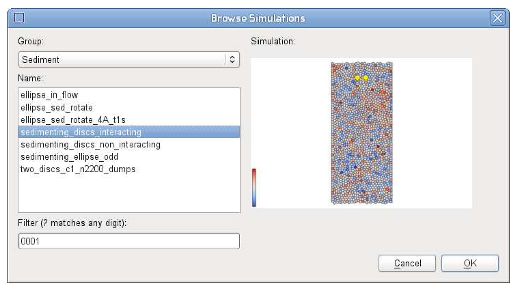 To present our solutions for visualization of foam simulation data, we use three simulation groups containing related simulations: the falling discs and the falling ellipse (2D), constriction (2D), the falling disc (2D) and the falling sphere (3D). The falling-objects simulation group contains the falling-ellipse and the falling-discs simulations (